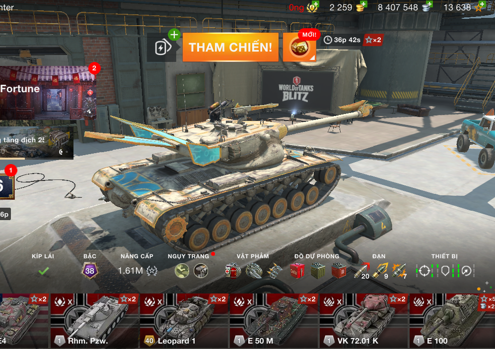 mounter - Acc World of Tanks Blitz sở hữu 176 tank từ cấp 5–10, trong đó có 57 tank vàng + xanh, gara cực khủng. Có 48 tank X tech tree (chỉ thiếu 1 line là full, đã full kíp lái), tài nguyên sẵn 2.250 vàng + hơn 8 triệu bạc. Acc wotb Phù hợp anh em thích full line, sưu tầm nhiều tank premium và vào chiến ngay không cần cày lại.