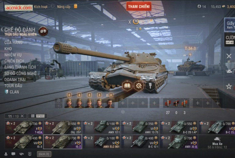 Điểm nổi bật là dàn 4 xe Tier X cực chất: IS-7 – giáp dày, đẩy line cực mạnh; T-62A – bắn chuẩn, ổn định, phù hợp solo kỹ năng; B-C 25t – sát thủ băng đạn, cơ động, chuyên úp sọt đối thủ; AMX 30 – linh hoạt, vừa bắn vừa di chuyển cực khó chịu. Bộ tank này mang lại trải nghiệm đa dạng từ tấn công, hỗ trợ đến kiểm soát bản đồ, chơi random, rank hay clan war đều hiệu quả.