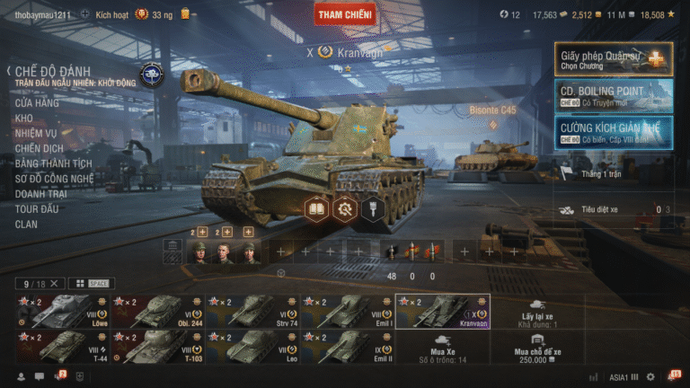 Điểm nổi bật là đã mở FULL Tier X Kranvagn – “vua thụt thò” với khả năng thủ đồi cực khó chịu, nạp đạn nhanh, combat cực kỳ hiệu quả. Ngoài ra còn sở hữu nhiều xe Tier VIII premium chất lượng như T-103 sát thương lớn, Löwe cày credit ổn định, KV-122, SU-100Y, IS-6 – bộ ba Liên Xô mạnh mẽ. Tuyến Thụy Điển cũng đã có Emil I – Emil II, sẵn sàng phát triển lên cao hơn.