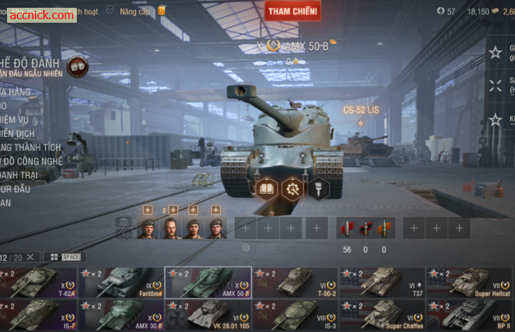 Acc World of Tanks (PC) này được build sẵn cực ngon với 4 tank Tier X gồm: IS-7 (heavy trâu bò, đẩy line mạnh), AMX 50 B (heavy autoloader xả đạn cực gắt), AMX 30 B (medium cơ động kiểm soát bản đồ tốt) và T-62A (medium chuẩn meta, bắn ổn định). Bộ tank cân đủ mọi kèo từ random đến clan war, chơi kiểu nào cũng phát huy hiệu quả.
