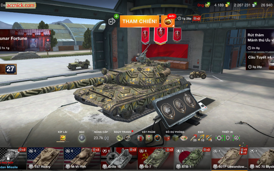 DarkKnightXI - Bán acc World of Tanks Blitz có 8 tank X mạnh (Sheridan Missile, T57 Heavy, M-VI-Yoh, Grille 15, IS-7, STB-1, 60TP Lewandowskiego, NC 70 Błyskawica), Có 5 tank Premium. Acc WoT Blitz garage ổn định, phù hợp leo rank và cày sự kiện, mua về là chiến ngay.