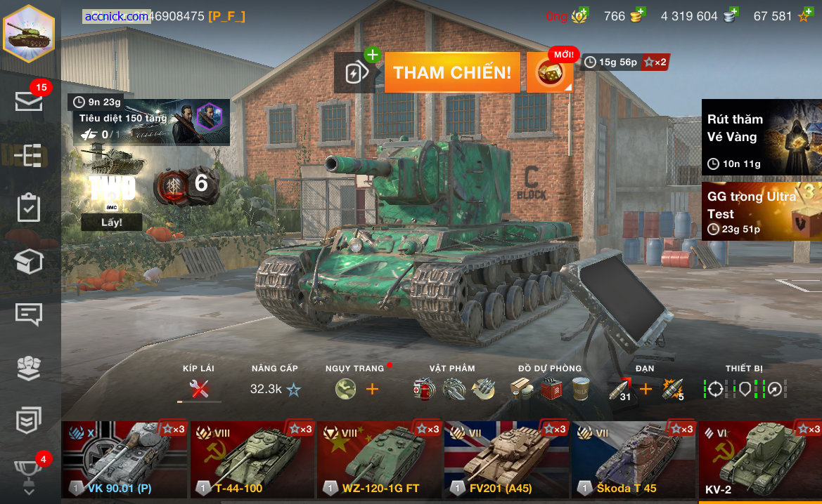 Shop bán acc WoT PC 99k có FV4005, 60TP acc World of tank nhiều xe premium uy tín giá rẻ