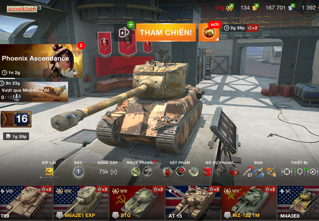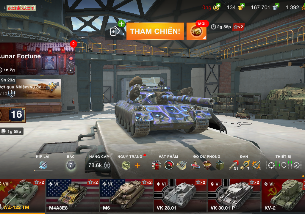 lunaticCKt_r3 - Bán acc World of Tanks Blitz có sẵn 3 tank cấp 8 mạnh: T69, AT 15 Caernarvon (chưa mua) cùng nhiều xe premium ngon như M6A2E1 EXP, STG, WZ-122 TM. Acc vào là chiến ngay, cày bạc tốt, leo rank ổn định – giao dịch uy tín tại Shop Anh Sỹ WoT.