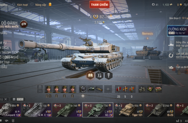 Bán Acc World of Tanks có 1 tank cấp 11 Leopard 120 và 3 xe tăng cấp 10 cực chất gồm pháo tự hành G.W. E 100, tăng hạng nặng 113 và quái thú BZ-75 và nhiều xe Premium tank khác. mua bán acc WoT uy tín.
