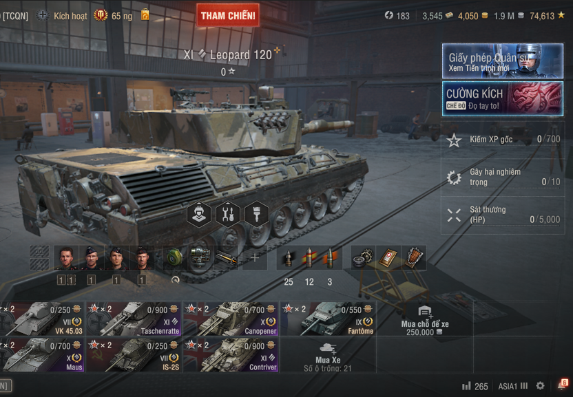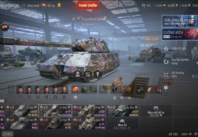 Bán acc World of Tanks PC giá tốt, server Asia, sở hữu 3 xe cấp 11 hiếm Contriver, Taschenratte, Leopard 120 cùng nhiều xe cấp 10 mạnh như Leopard 1, Maus, Canopener, shop chuyên mua bán acc World of Tank uy tín.