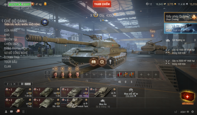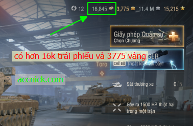 Bán ACC World of Tanks có Obj. 430U Sở Hữu 16k trái phiếu và 3775 vàng