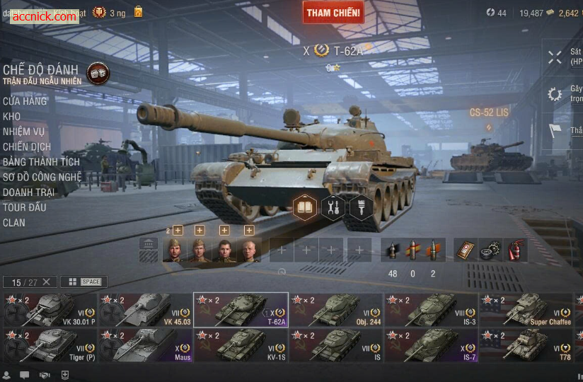 Anh em đang tìm một acc World of Tanks PC có thể vào trận là chiến ngay thì đây là lựa chọn cực kỳ đáng cân nhắc. Acc sở hữu dàn tank Tier X chất lượng cao như Maus – “pháo đài di động” với lớp giáp siêu dày, IS-7 – heavy quốc dân lao thẳng cực uy tín, và T-62A – medium linh hoạt, bắn chuẩn, hỗ trợ gánh team hiệu quả. Combo này cân tốt mọi kèo từ random đến clan war, chơi lâu dài cực đã.