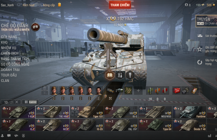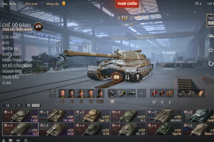 Sao_Xanh - Acc WOT PC server ASIA sở hữu 4 tank X gồm IS-7, T-62A, T92 HMC, 60TP Lewandowskiego. Ngoài ra còn nhiều tank premium farm bạc tốt như Fatome, Tiger 131, Type 64, Škoda T 40, IS-2S cùng dàn xe VIII–IX mạnh. Shop Anh Sỹ – Bán acc WOT uy tín 5 năm