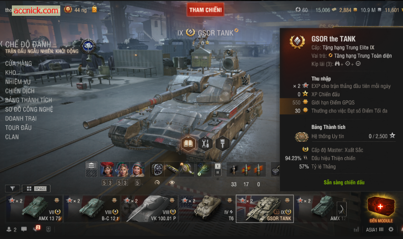 Bên cạnh đó là dàn tank premium cực ngon như GSOR Tank (hàng hot farm bạc cực đã), Fantome, VK 45.03, VK 28.01 105 giúp bạn kiếm bạc nhanh, chơi lâu dài mà không lo thiếu tài nguyên.