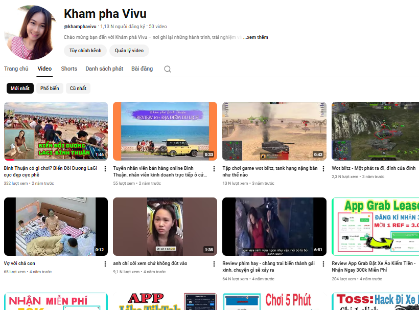 Bán kênh YouTube “Kham pha Vivu” – 1.13K subs, kênh sạch, lập từ lâu 2020, nội dung trải nghiệm – du lịch – review – vlog đa dạng, dễ chuyển hướng sang bất kỳ chủ đề nào. Kênh có tổng 50 video, nhiều clip lên view tự nhiên, nhiều video cũ vẫn tăng view đều.