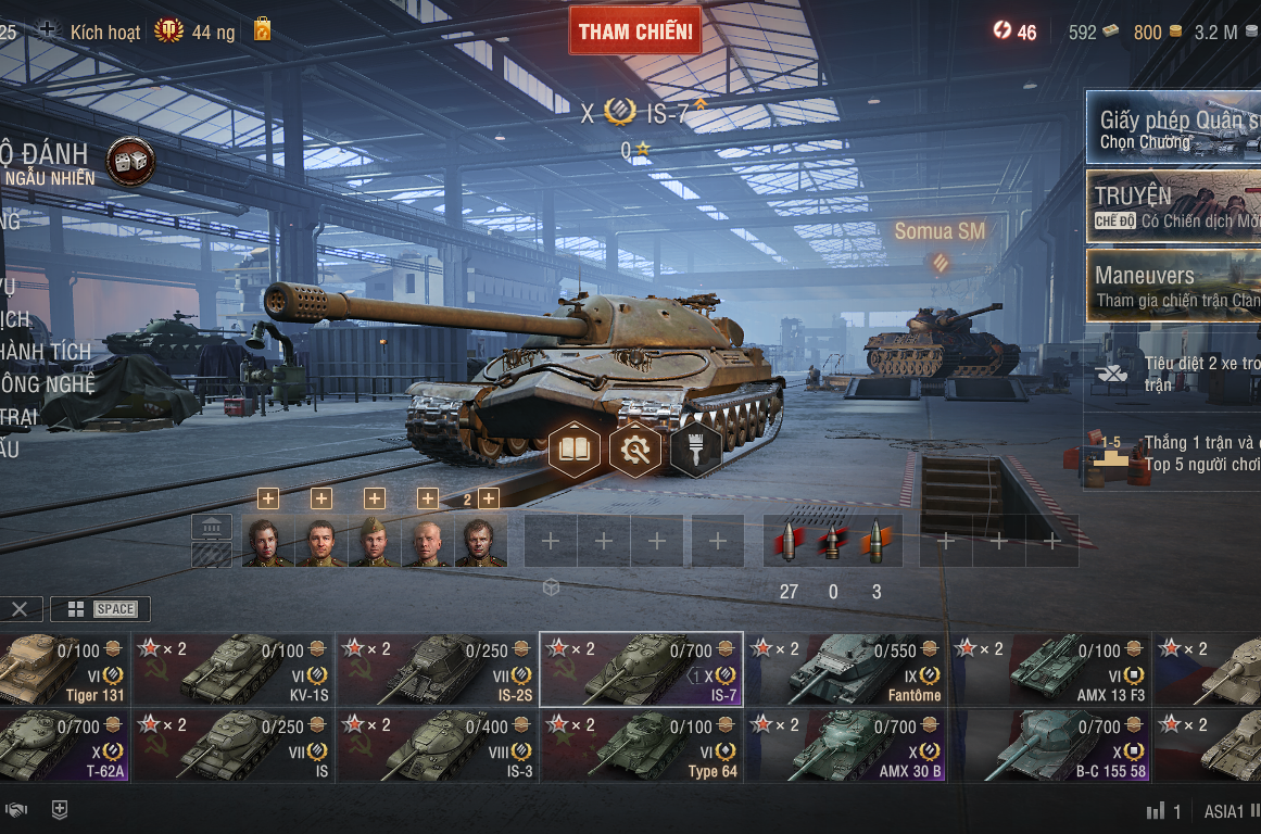 Phần premium thì đúng kiểu “combo quốc dân + tí hàng hiếm”, có Fantôme cấp 9 nhìn khá ngầu, mang tính sưu tầm; IS-2S với Tiger 131 thì chơi heavy nhẹ nhàng, dễ vào form; Type 64 thì chạy như điện, soi map, quấy rối cực khó chịu; còn Škoda T40 thì trung bình khá, dễ làm quen, hợp anh em tập chơi medium. Bộ này không phải dạng quá bá nhưng lại chơi lâu không chán, đổi gió liên tục.